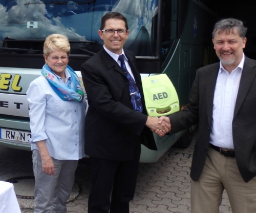 | Kleiner Lebensretter für Reise- und Nahverkehrsbusse AICHHALDEN. Als erstes Busunternehmen der Region rüstet der IMH e.V. die Reise- und Nahverkehrsbusse der Nagel Reisen GmbH in Aichhalden mit Defibrillatoren zur Notfallhilfe aus. Der erste von drei sogenannten Automatisierten Externen Defibrillatoren (AED) wurde nun übergeben. Aufkleber im Bus weisen in Zukunft darauf hin, dass ein solches Gerät an Bord und wo es untergebracht ist. Ein AED ist ein Gerät zur Behandlung von Herzkammer-Flimmern durch Stromimpulse. Im Gegensatz zu den Defibrillatoren von Rettungsdiensten Herzkammer-Flimmern durch Stromimpulse. Im Gegensatz zu den Defibrillatoren von Rettungsdiensten oder Krankenhäusern sind AEDs durch auch für Laienhelfer geeignet. Die Busfahrer werden in die richtige Anwendung eingewiesen«, versichert Geschäftsführer Nagel. Erste Hilfe sollte nach dem Willen des IMH idealerweise durch jeden, zu jeder Zeit, an jedem Ort auszuführen sein. Wichtig ist die Gewissheit, dass man Leben retten kann, bevor professionelle Hilfe eintrifft, zum Beispiel können auch Ersthelfer bei Herz-Kreislauf-Versagen helfen. Quelle: Schwarzwälder Bote « zurück |