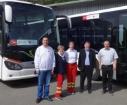 | Neue Defibrillatoren für den Nah- und Fernverkehr BÄHRENHTAL. Der IMH e.V. rüstet Omnibus Beck fünf Linienbusse sowie zwei Reisebusse mit Defibrillatoren zur Notfallhilfe aus. Bei Herzkammer-Flimmern kann ein Defibrillator Leben retten. Das Gerät analysiert automatisch den Herzrhythmus und verfügt über eine sprachgesteuerte Benutzerführung, die alle notwendigen Handlungsschritte vorgibt. Aufkleber weisen zukünftig darauf hin, dass ein solches Gerät mit an Bord ist. Die Busfahrer wurden bereits in die richtige Anwendung der AEDs durch Frau Hintermeister und Frau Bühler des ASB eingewiesen. Wichtig ist die Gewissheit, dass man Leben retten kann, bevor professionelle Hilfe eintrifft; denn Erste-Hilfe sollte durch jeden, zu jeder Zeit, an jedem Ort auszuführen sein. Es können auch ungelernte Ersthelfer bei Herz-Kreislauf-Versagen helfen. Deshalb stellt der IMH z.B. Defibrillatoren zur Verfügung und installiert Defibrillatoren dort, wo sie am dringendsten gebraucht werden. Plötzlicher Herzstillstand kommt oft ohne jegliche Vorwarnung. Er kann auch durch direkte Ursachen wie Ersticken, Traumata oder Ertrinken entstehen. Die einzig wirksame Behandlung erfolgt durch Defibrillation, die durch einen elektrischen Impuls einen Schock verabreicht, um die Wiederherstellung eines normalen Herzrhythmus zu erreichen. Geschieht dies innerhalb der ersten fünf Minuten, dann besteht eine Überlebenschance. Quelle: Wochenblatt « zurück |