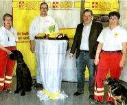 | Lebensretter in bedrohlichen Situationen TUTTLINGEN. Der ASB-Rettungshundezug Tuttlingen, der in diesem Jahr sein 20-jähriges Bestehen feiern kann, bekam zwei AED-Geräte (automatisierte externe Defibrillatoren) vom IMH e.V. überreicht. Die Zugführerin des ASB-Rettunghundezugs Barbara Hintermeister freute sich sehr, dass mit diesen Geräten eine wichtige, im Ernstfall lebensrettende Lücke im Einsatzgepäck geschlossen wurde. „Dies bringt uns die zusätzliche Sicherheit, dass man nun in einem Sucheinsatz auch in einer lebensbedrohlichen Situation, wie einem Herz-Kreislauf-Versagen wirkungsvoll und sicher Erste Hilfe leisten kann.“ Quelle: Wochenblatt « zurück |